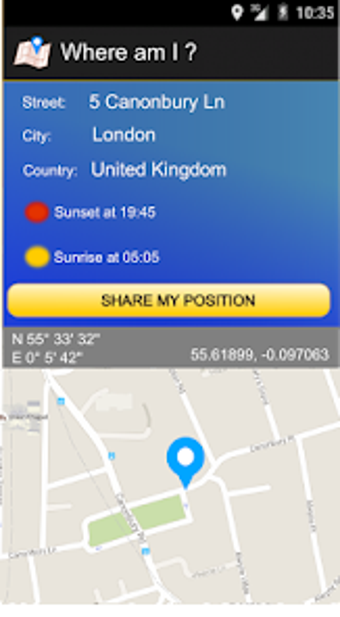3. ขึ้นแดด: Where Am I ยังแสดงเวลาของการขึ้นแดดที่ตำแหน่งของคุณ ซึ่งมีประโยชน์ในการวางแผนกิจกรรมกลางแจ้ง